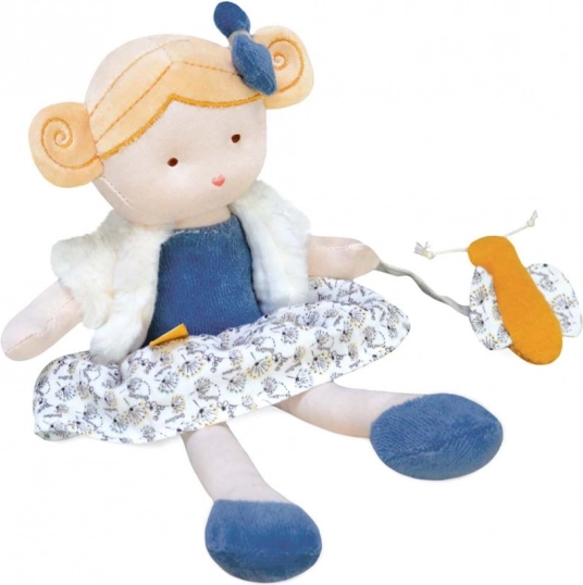 Ova očaravajuća lutka nosi harmonične prirodne tonove i izrađena je od materijala koji su ekološki prihvatljivi i prikladni za djecu od rođenja. Odjeća ove lutke je u zlatnožutoj, oker, ecru i plavoj boji, što potiče dječja osjetila.