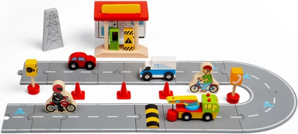 Predstavljamo izvrstan drveni cestovni set koji vašem djetetu donosi neograničene mogućnosti igre. Ovaj set sadrži 25 dijelova, uključujući drvene dijelove ceste i dodatke, koji se mogu kombinirati s drugim setovima Bigjigs Rail ili s drugim drvenim cestovnim setovima. Izrađen od visokokvalitetnih materijala iz odgovornih izvora, ispunjava sve europske sigurnosne norme.