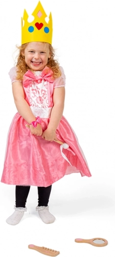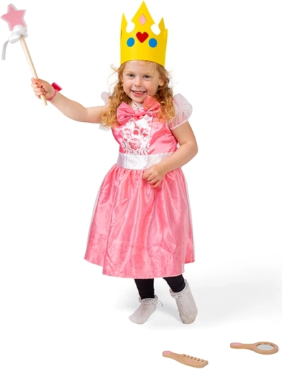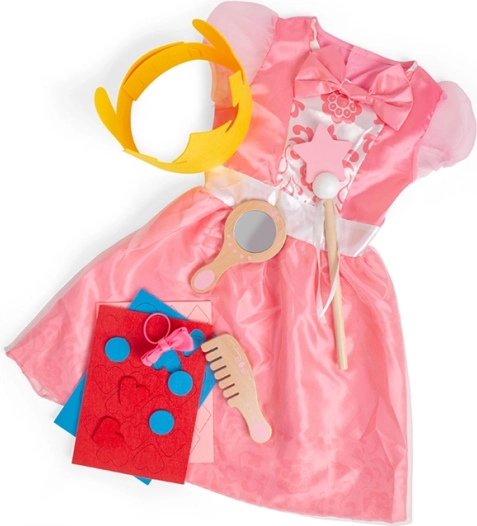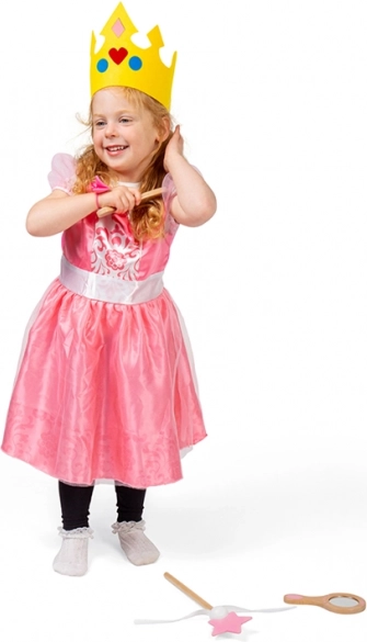 Pretvorite svaku igru u kraljevsku avanturu s ovim čarobnim setom za male princeze. Ružičastu haljinu s nježnim detaljima i mrežastim rukavima nadopunjuju kruna, ogledalce, češalj i čarobni štapić. Set potiče kreativnost, igru uloga i razvoj mašte. Testirano prema EN71 i REACH.