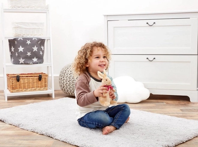 Plišani zeko Flopsy izrađen je od vrhunskih i najmekših tkanina koje su ugodne na dodir i nježne prema dječjoj koži. Prijateljski izraz, duga ušeca i kontrastna mašnica čine ga omiljenim pratiteljem za spavanje i putovanja.