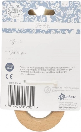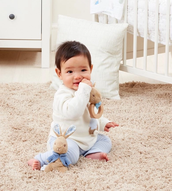 Nježna zvečka potiče znatiželju i koncentraciju, dok glatki drveni prsten pomaže masirati desni i umiriti nemirne zubiće. Bezvremenski dizajn inspiriran klasičnim pričama BEATRIX POTTER prekrasan je dodatak svakoj bebi opremi.