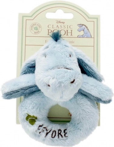 Super mekano plišano zvečkalo s likom EEYORE iz Classic Pooh razveselit će svaku bebu. Zahvaljujući laganoj i lako prihvatljivoj ručki savršeno pristaje u male ručice, a nježno zveckanje potiče razvoj osjetila i umiruje. Idealno darivanje za novorođenče, izrađeno od kvalitetnog, vrlo mekanog pliša i prikladno od rođenja.