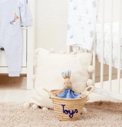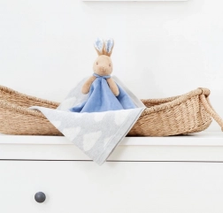 Predstavljamo plišanu tješilicu zeca, izrađenu od najmekšeg pliša i 100% pamuka. Proizvod je osmišljen kako bi pružio umirujući osjećaj i poticao osjetilni razvoj vašeg djeteta. Zeko je estetski usklađen s plavom dekicom koja donosi osjećaj mira i sigurnosti. Ovaj plišani pratitelj idealan je za odmor nakon ručka ili prije spavanja i zavoljet će ga svako dijete. Savršen poklon za male obožavatelje zečića.