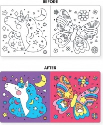 Ova očaravajuća kupališna knjižica postat će omiljena pratiteljica svakog djeteta tijekom kupanja. Knjiga je osmišljena tako da se slike mijenjaju pri uranjanju u vodu, što će djecu oduševiti i istodobno ih potaknuti na otkrivanje novih stvari. Paleta živopisnih boja i šarmantnih jednoroga privlači pažnju, stoga je idealna za djecu od najranije dobi.