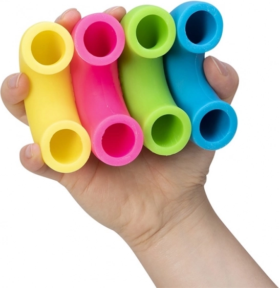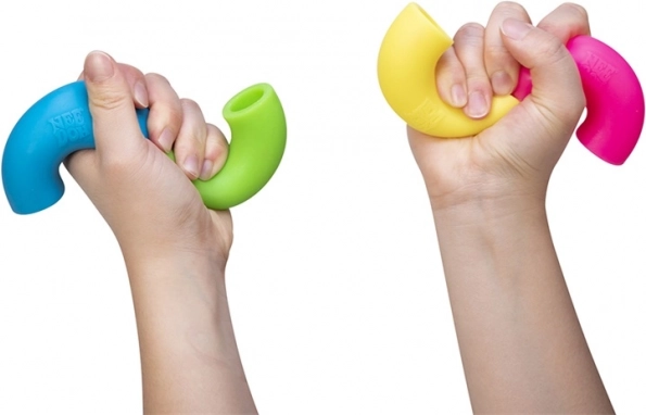 Ovi šareni “makaroni” izgledaju kao pravi, ali to su mekane fidget cjevčice s kojima ćete se zabaviti bez ijedne mrvice nereda. Stiskajte, rastežite, savijajte ili ih navucite na prste – antistresna igračka NEE DOH MAC N' SQUEEZE izvrsna je za osjetilnu igru kod kuće, u školi i na putu.