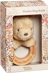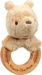 Ovo šarmantno zvečkalo s glavicom MEDVJEDIĆA POOHA na glatkom drvenom prstenu razveselit će najmlađe nježnim zvukom i mekanim dodirom. Ergonomski oblik potiče prirodan hvat dječje ručice i razvoj fine motorike.