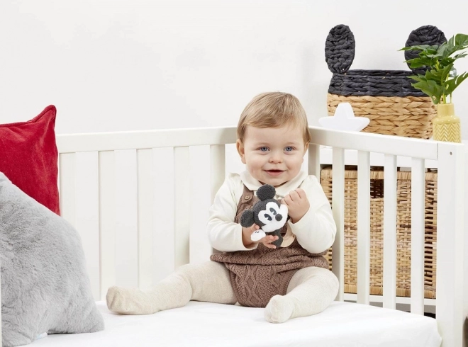 Preslatko dječje zvečkalo s likom MICKEY MOUSE kombinira prirodnu bukovinu i mekani pliš za sigurno i poticajno igranje od rođenja. Glatki drveni prsten lako se drži, nježan zvuk zvečkanja potiče osjetilnu percepciju, a raznolike teksture razvijaju osjet dodira. Odlično kao poklon za novorođenče, dolazi u vintage poklon-kutiji.
