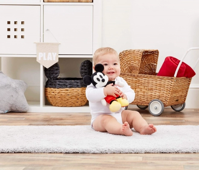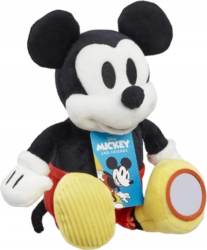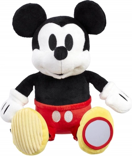 Donesite kući čaroliju klasičnog lika s plišanim MICKEY MOUSE Activity. Ikonične crvene kratke hlače i žute cipele upotpunjuju elementi koji djecu potiču na istraživanje: teksturirana vezica na desnoj cipeli i sigurno okruglo zrcalo na lijevoj. Zahvaljujući iznimno mekom materijalu, idealan je za maženje i prve igre.
