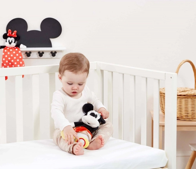 Mekana plišana MINNIE Activity 18 cm za bebe. Zrcalce, teksturirana cipelica i potpora osjetilima i finoj motorici. Izvrstan poklon od rođenja.