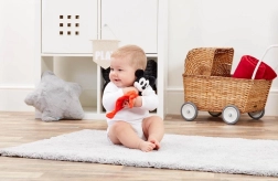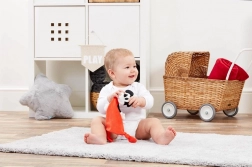 Taktilni čvorići u kutovima i prepoznatljive ušice potiču razvoj fine motorike i znatiželju najmlađih.