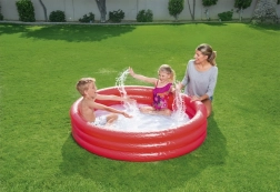 Trokružni nafukavajući bazen za djecu od 2 godine, zapremnine 282 l vode. Približna veličina bazena: 152×30 cm. U kompletu je uključena zakrpa za popravak.