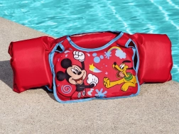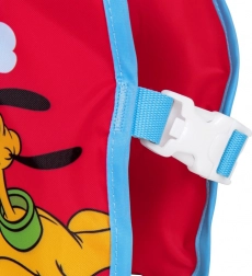Tkanina, brzosušeći materijal, ugodna je na dodir i za razliku od gume ne lijepi se za kožu. Veseli motiv Mickey Mousea i Pluta potiče djecu na igru i učenje plivanja, a upadljiva crvena boja povećava vidljivost u vodi. Preporučeni opseg prsnog koša je 56 cm. Prsluk je namijenjen uporabi isključivo u vodi, pod nadzorom odrasle osobe.