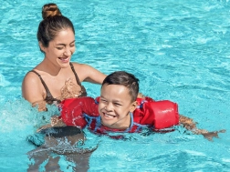 Pjenasta ispuna u kombinaciji s rukavićima i prsnom pločom podupire stabilnost u vodi i daje djeci sigurnost pri vježbanju plivačkih vještina.