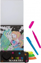 Ovaj razigrani set neonskih bojanki donosi djeci sate zabave i razvoja mašte. Crne podloge i jarke boje stvaraju upečatljiv kontrast zahvaljujući kojem svaki uradak dolazi do izražaja. Pakiranje uključuje 40 listova s motivima i 5 neonskih flomastera s kojima će boje doista svijetliti.