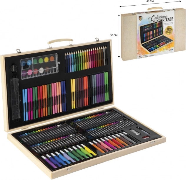Otkrijte univerzalni likovni set u elegantnom drvenom koferu s ukupno 180 komada pribora za crtanje i slikanje. Idealan za djecu, studente i hobi slikare – sve je pregledno spremljeno na jednom mjestu za kreativno stvaranje kod kuće i na putu.