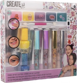 Ovaj šareni set šminke CREATE IT! donosi sve što djeci treba za prvo sigurno upoznavanje s kozmetikom. Metalik nijanse i svjetlucavi efekti stvaraju originalan izgled za svaku dječju zabavu i popodnevnu igru.