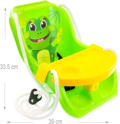 Praktična i zabavna ljuljačka za najmlađe s motivom žabe nudi način rada 2u1 – s prednjom sigurnosnom prečkom za malu djecu i mogućnošću kasnije uporabe bez prečke. Izrađena je od kvalitetne i sigurne plastike te ima čvrstu zaštitu protiv ispadanja, pa se djeca mogu ljuljati udobno i sigurno kod kuće i u vrtu.
