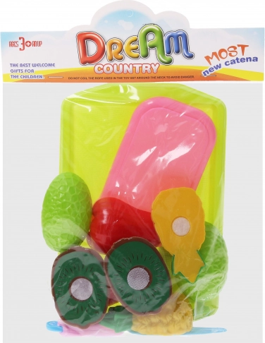 Ovaj set za rezanje voća idealan je za djecu koja vole oponašati odrasle u kuhinji. Dijelovi su prilagođeni dječjim ručicama, a sigurni "nož" omogućuje rezanje pojedinih komada voća spojenih čičkom ili klinčićima. Dijete uživa u realističnojoj igri, dok roditelji mogu biti bez brige.