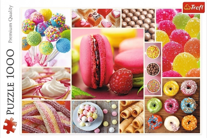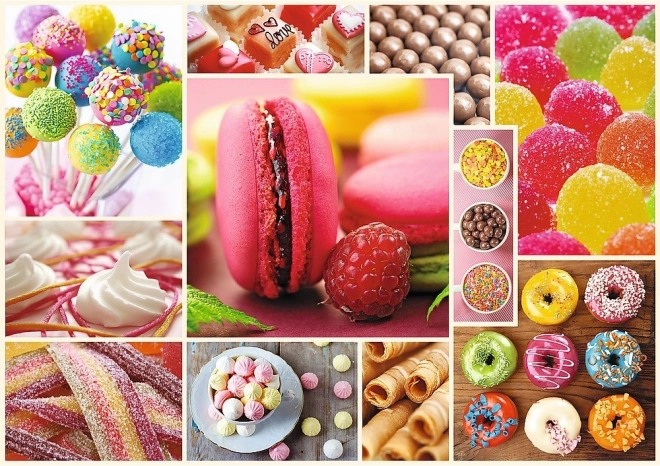 Puzzle od 1000 dijelova koji prikazuju kolaž slika sa slatkim, šarenim bombonima. Puzzle mogu poslužiti kao zidna dekoracija u kuhinji i blagovaonici, kao i u dječjoj sobi. Nakon slaganja nastaje slika dimenzija 68x48 cm. Visoku kvalitetu, zasićenost boja i sigurnost puzzli osigurava kalandrirani reflektirajući papir premazan ekološkim prehrambenim bojama.