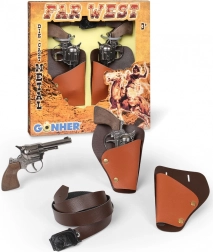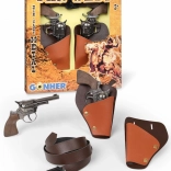 Ovaj metalni set kaubojskih revolvera donosi djeci i odraslima klasičnu vestern atmosferu. Dva kvalitetna metalna komada uključuju zajedničku futrolu, lako se nose i odlično leže u ruci. Zahvaljujući zvučnom efektu djeluju realistično, a pritom su sigurni – bez pucanja i bez metaka.