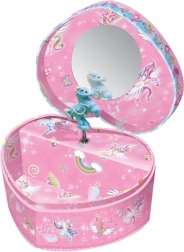 Jedinstvena glazbena kutija srce s motivom jednoroga svira klasičnu melodiju koja uljepšava svaki trenutak. Kada se otvori, figurica unutra počinje se okretati, dok svira predivna melodija. Oduševljenje za oči dodatno je pojačano prisutnošću ogledala i prostora za pohranu sitnica.