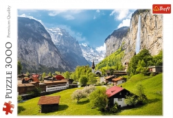 Otkrijte umirujući svijet slaganja uz TREFL 3000 Lauterbrunnen puzzle. Scenski motiv slapa, planinskih vrhova i slikovitog sela donosi jedinstven vizualni doživljaj te nakon slaganja postaje upečatljiva dekoracija doma.