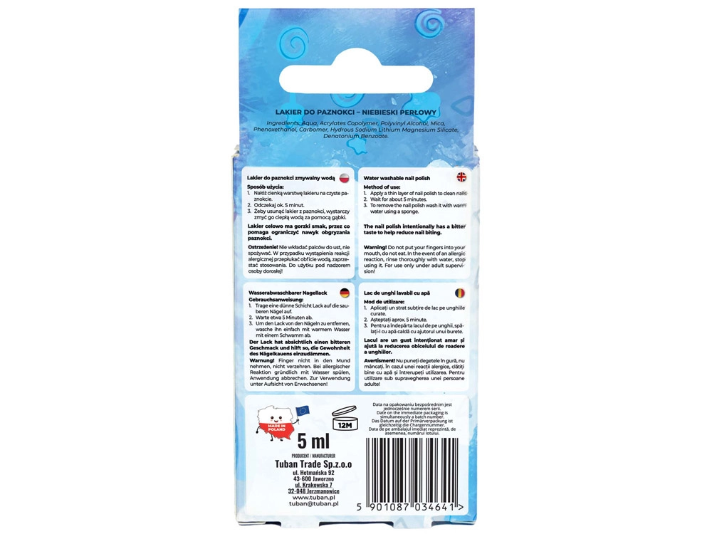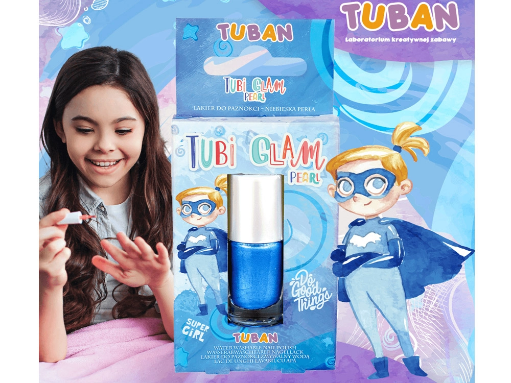 Sedefasta serija lakova Tubi Glam brenda TUBAN donosi ne samo prekrasne plave nijanse, već prije svega jamstvo sigurnosti tijekom uporabe. Ovaj lak je dizajniran tako da bude 100% siguran za nježne dječje nokte.