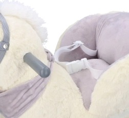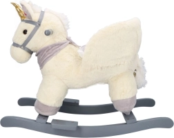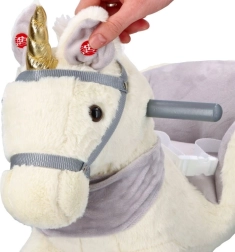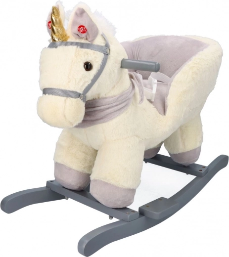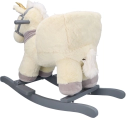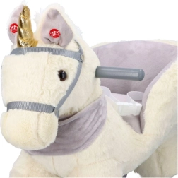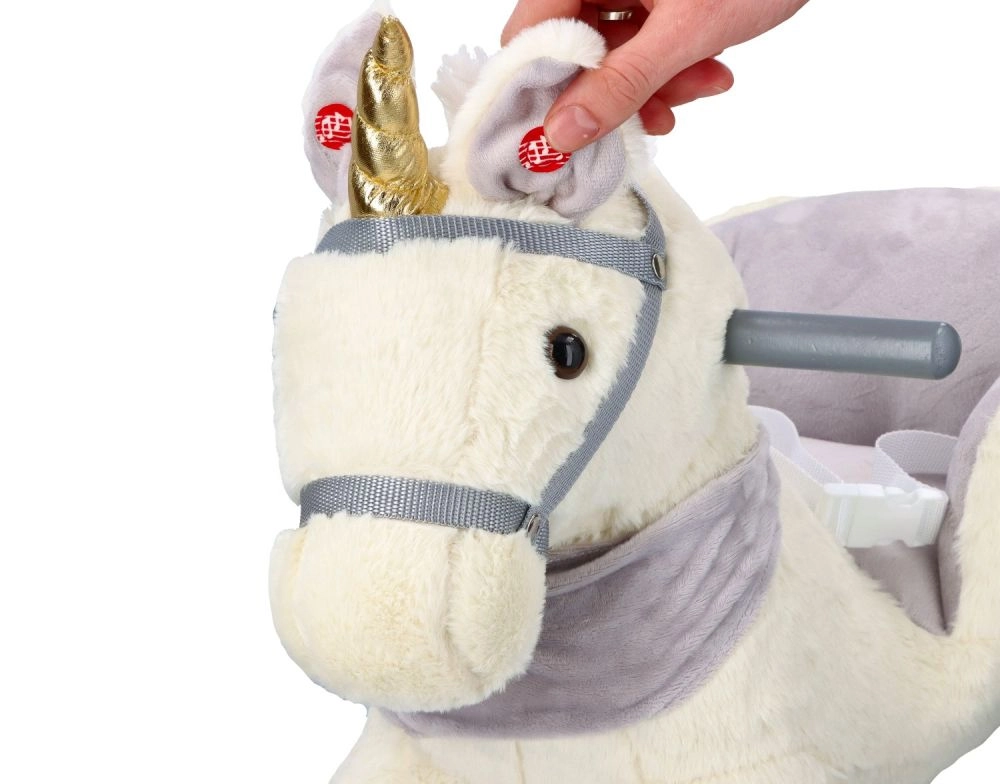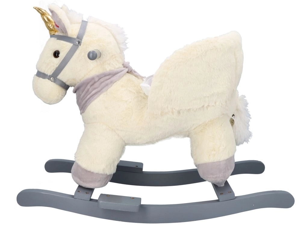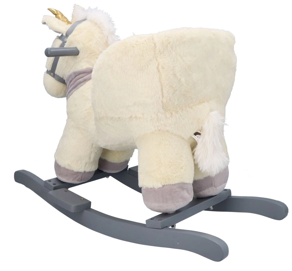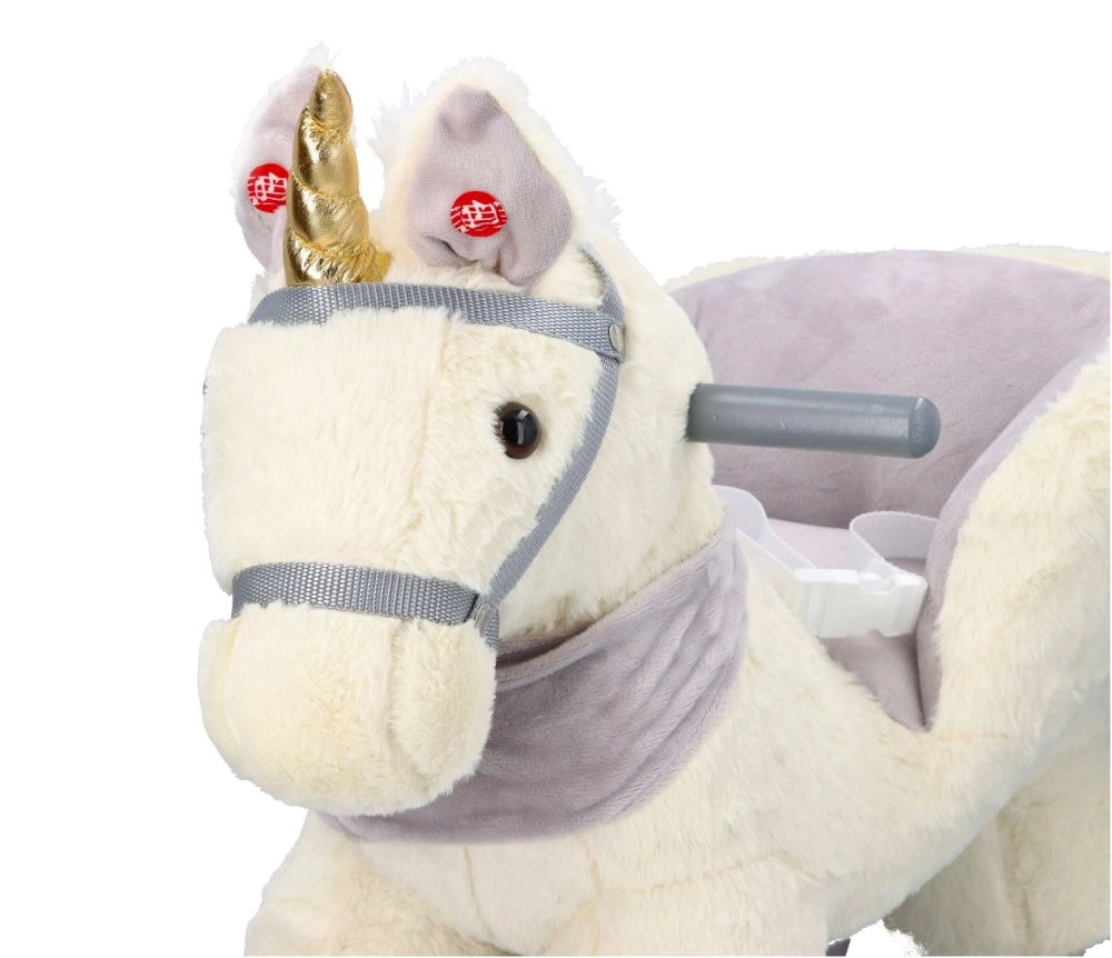Ovaj plišani klinajući jednorog sa zlatnim rogom i suptilnim sivim detaljima idealan je izbor za kućnu zabavu. Meko sjedalo s naslonima i sigurnosnim pojasom pruža udobnost i stabilnost, dok drveni klizači i rukohvati osiguravaju siguran i gladak pokret.