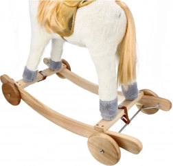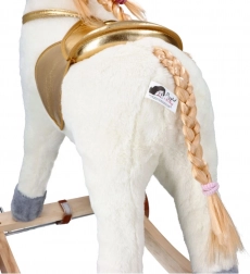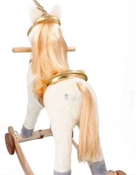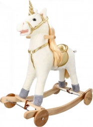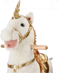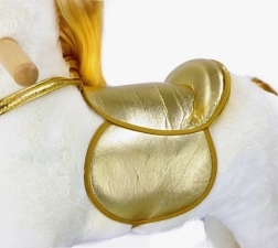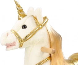 Otkrijte uzbuđenje vožnje na ovom prekrasnom zlatnom jednorogu. S mekim i ugodnim plišem nudi udobna i zabavna iskustva za vašu djecu. Stabilna drvena konstrukcija i elegantni pozlaćeni detalji donose čarobnu atmosferu svakoj igri.