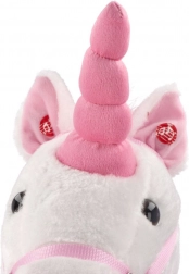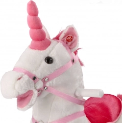 Jednorog ima meku, plišanu površinu s bijelim tijelom i ružičastim detaljima, što ga čini prekrasnim dodatkom dječjoj sobi ili igraonici.