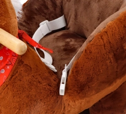 Otkrijte svijet zabave s našim plišanim ljuljačkim konjićem, koji oduševljava ne samo svojim realističnim izgledom već i funkcionalnošću. Ovaj konjić ima meko smeđe tijelo i opremljen je sigurnim sjedalom koje pruža udobnost tijekom igre. Pokret ljuljanja pomaže djeci razvijati osjećaj za ravnotežu i koordinaciju.