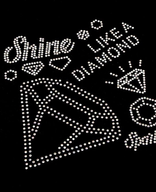 Uljepšajte svoju odjeću u trenu uz naljepak za glačanje s kamenčićima s motivom Shine Like a Diamond. Praktična dimenzija 15 × 20 cm, jednostavna primjena glačalom i otpornost pri pranju do 40 °C (odjevni predmet prati naopako).