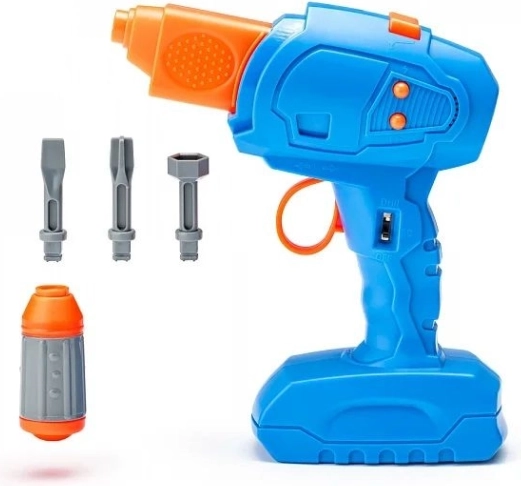 U kompletu je i dječja bušilica s izmjenjivim nastavcima koja vjerno oponaša pravi alat, ali je sigurna za male ruke. Lagan i čvrst dizajn od kvalitetne plastike prikladan je za svakodnevnu igru kod kuće i na putu.