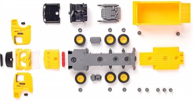 Set sadrži plastične dijelove vozila i kotače za vlastitu montažu. Djeca sastave vozilo i odmah mogu krenuti na gradilište.