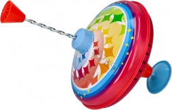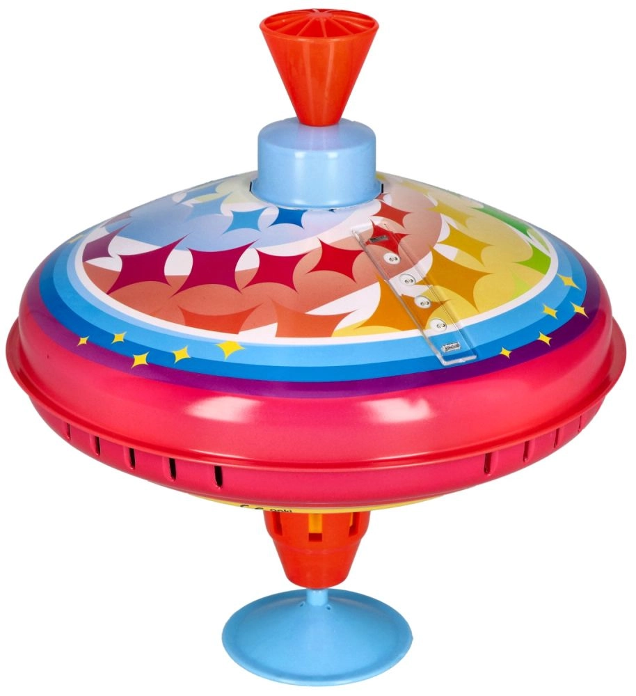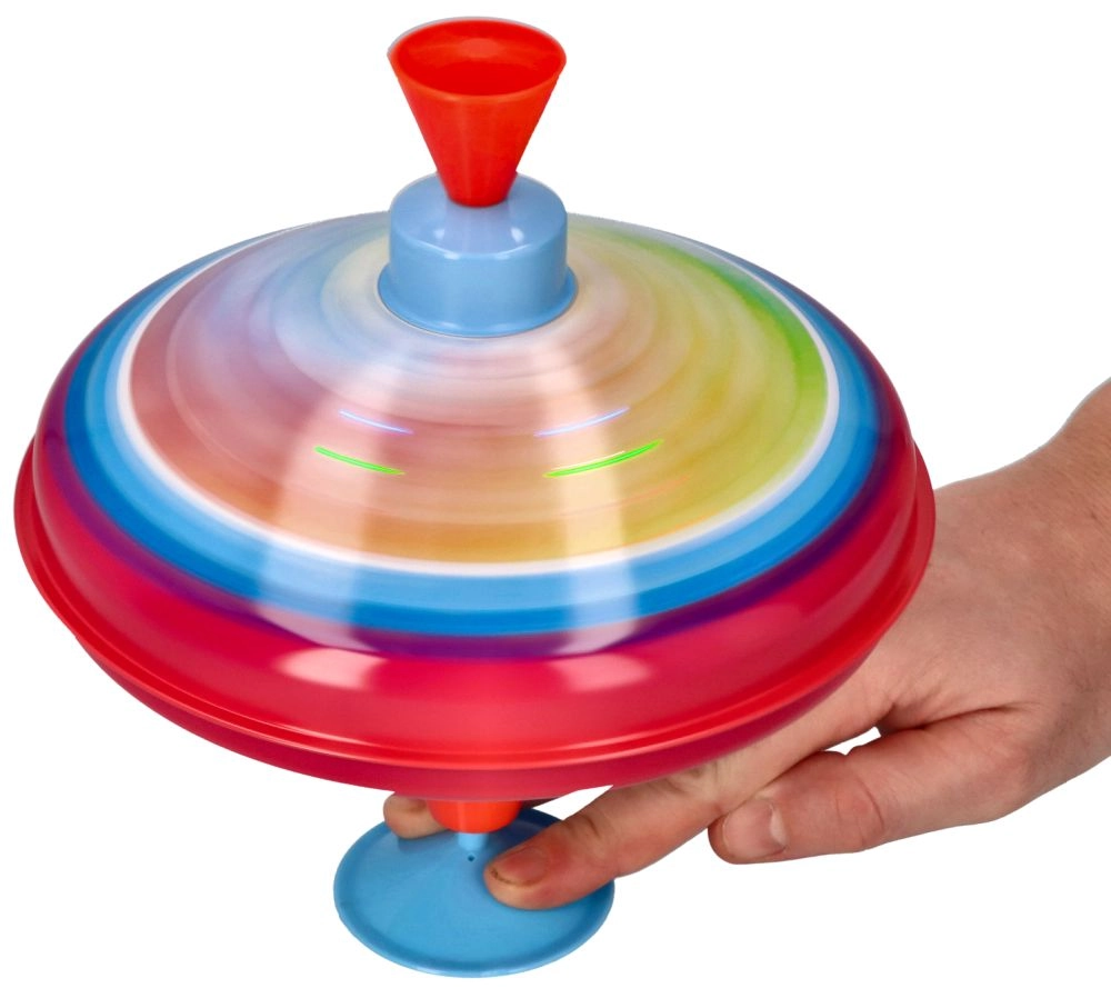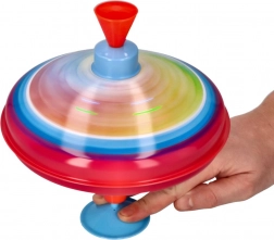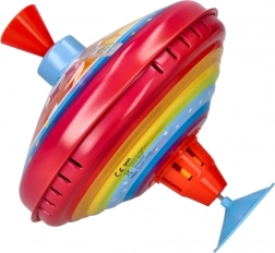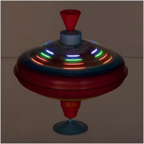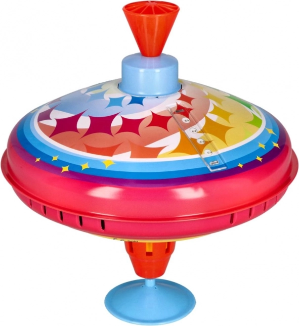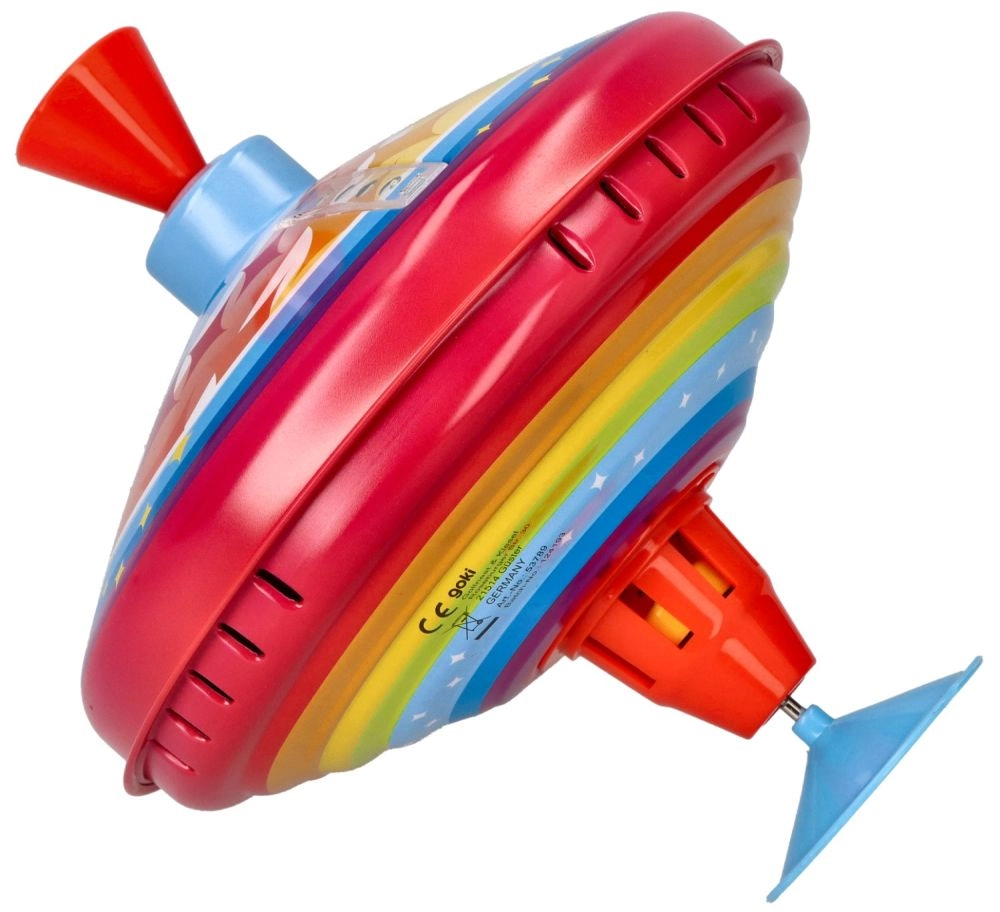 Otkrijte čaroliju tradicionalne igračke u novom ruhu. Ova metalna vrteška s postoljem pokreće se jednostavnim pritiskom na gornji klip. Tijekom rotacije ispušta blag, umirujući zvuk, a integrirane LED diode se osvijetle, stvarajući atraktivne svjetlosne efekte koje djeca vole.
