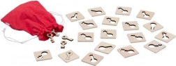 Otkrijte zabavnu i obrazovnu igru Taktilno memo Ključevi od GOKI, koja razvija finu motoriku, taktilnu percepciju i zapažanje. Djeca i odrasli traže odgovarajuće šablone za pojedine ključeve i natječu se tko će pronaći najviše parova. Igra nudi dva režima igre za različite razine vještina i izrađena je od kvalitetnih materijala.