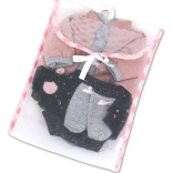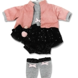 Donesite svojim lutkama novi stil s ovom prekrasnom odjećom za lutku Llorens. Ovaj set od 4 dijela uključuje prekrasnu gumicu s mašnom dizajniranu za lutke veličine 35 cm. Ovaj detaljan komplet potiče kreativnu igru i pritom donosi eleganciju. Ručno izrađeno u Španjolskoj, svaki komad je jedinstven. Pakiranje uključuje plastičnu vješalicu za praktično pohranjivanje.