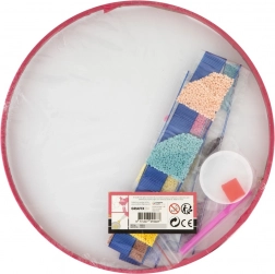 Dio pakiranja je drveni okvir sa zategnutim platnom, tako da gotovo djelo možete odmah izložiti. Kompletan set sadrži sve alate i set šarenih kamenčića – dovoljno je postupno odlijepiti zaštitnu foliju, uzeti vosak u olovku i početi stvarati.