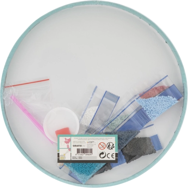 Dijamantno slikanje GRAFIX donosi umirujuće stvaranje s dojmljivim rezultatom. Zahvaljujući jasno označenim simbolima i aplikaciji kamenčića pomoću olovke lako ćete izraditi preciznu, blistavu mandalu s izraženim tirkiznim akcentima, koja će postati stylish ukras vašeg doma.