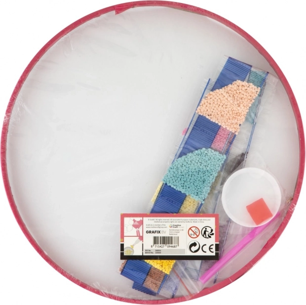 Otkrijte opuštajući kreativni hobi s Grafix setom za dijamantno slikanje na okruglom platnu od 30 cm. Šarene kamenčiće aplicirate pomoću olovke na unaprijed označena mjesta i stvorit ćete sjajnu tirkiznu mandalu u drvenom okviru. Set sadrži sve potrebno – idealno za odmor, razvoj strpljenja i dekoraciju interijera.