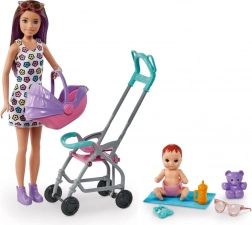 Otkrijte čaroliju igara njege sa setom BARBIE Skipper Dadilja. Djeca mogu voziti bebu u kolicima koja se pri vožnji ljuljaju, a zahvaljujući odvojivoj nosiljci lako je prenijeti. Stilska lutka nosi ljetnu haljinu i cipele, beba i šareni dodaci pozivaju na beskrajne priče.