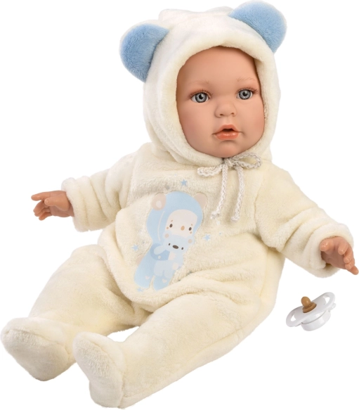 Proširite mogućnosti igre uz kompatibilnu originalnu odjeću Llorens iz kolekcije NEW BORN u veličinama 40–42 cm ili 43–45 cm. Lutka nema zvučne funkcije, što potiče mirnu i kreativnu igru. Priložena duda služi kao stilski dodatak.
