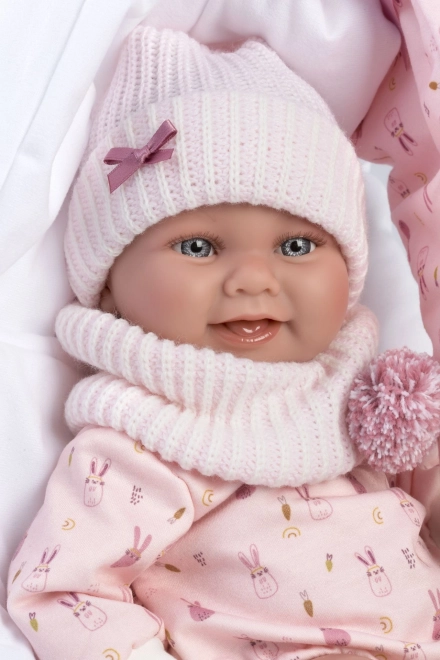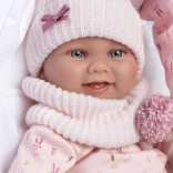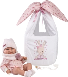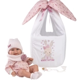 Ova realistična lutka Llorens New Born djevojčica donosi vjerni prikaz bebineg tijela s potpuno vinilnim kućištem na kojem je vidljiv svaki preslatki detalj. Zahvaljujući vodootpornom materijalu, lutku je moguće pažljivo kupati (izbjegavajte močenje trepavica). Ruke i noge su spojene zglobovima, pa je lutka pomična i može samostalno sjediti.