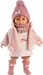 Odjeća uključuje pleteni džemper, hlače i kapu koje pružaju lutki ugodan izgled. Idealno za hladnije sezone.