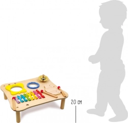 Stolić je opremljen navojnim nogama od bukova drva za jednostavnu montažu i čvrstu stabilnost. Djeca mogu otkrivati raznolike zvukove i melodije koje potiču njihovu maštu i radost otkrivanja.