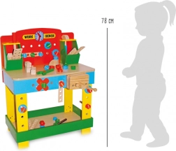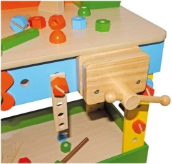 Ovaj stabilan i siguran dječji radni stol od kombinacije masivnog bukovog drva i izdržljive šperploče nudi realistično okruženje za prve majstorske projekte. Djeca se na zabavan način uče upoznavati alat, materijale i osnovne radne postupke, pritom razvijajući koordinaciju ruka-oko i strpljenje.