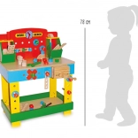 Radni stol ima robusnu konstrukciju i dovoljno prostora za odvrtanje, slaganje i maštovitu igru. U pakiranju se nalaze dijelovi i dodaci prema slikama kako bi djeca mogla odmah početi stvarati.