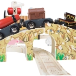 Set je izrađen od kvalitetnih i odgovorno dobivenih prirodnih materijala te dopunjen izdržljivim plastičnim elementima za dugi vijek trajanja. Svi dijelovi dizajnirani su s naglaskom na sigurnost i razvoj dječjih vještina – potiču maštu, spretnost i koordinaciju. U pakiranju se nalaze svi elementi prema slici, a set je kompatibilan s većinom klasičnih drvenih željezničkih pruga.