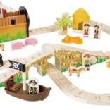 Uđite u svijet pirata i mašte. Šest pirata vlada vlastitom željezničkom prugom na otoku, gdje drvene tračnice vode preko mosta sa zvonom, a vlak prevozi top i škrinju punu zlata. Stanica s dizalicom i magnetskom kukom omogućuje lako ukrcavanje tereta – dovoljno je okrenuti mehanizam i spustiti magnet.