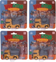Kompaktno građevinsko vozilo na inercijski pogon razveselit će male graditelje realističnim izgledom i jednostavnim upravljanjem. Dostupno je u četiri omiljene varijante – kipper, miješalica, dizalica i bager. Zahvaljujući dimenzijama 8,5 × 5 × 5,5 cm odlično pristaje dječjoj ruci i idealno je za igru kod kuće i na putu.